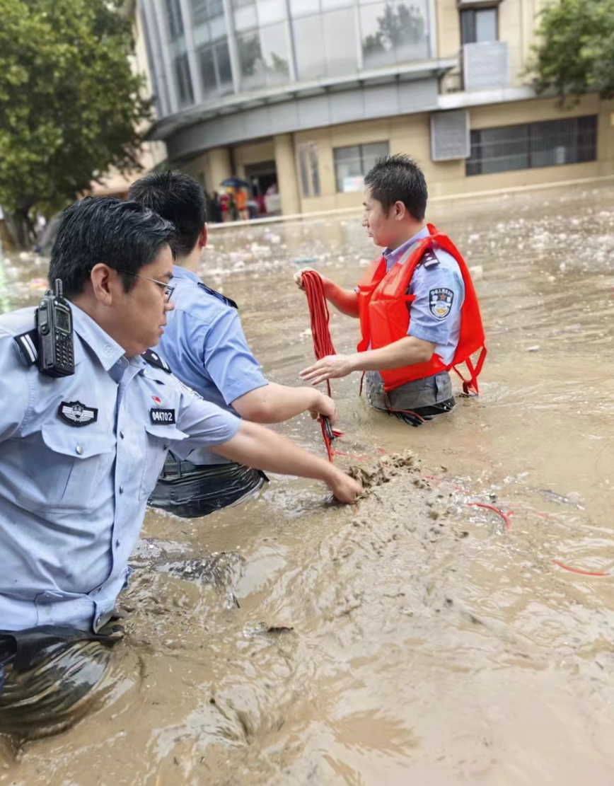 暴雨、洪水、救援……经历完一场紧张的救援行动,十余辆涉水车内的人员被顺利转移,民警李龙暂时松了一口气,离开积水危险区域,李龙左右脚上两只不一样的拖鞋顿时吸引了同事们的目光。