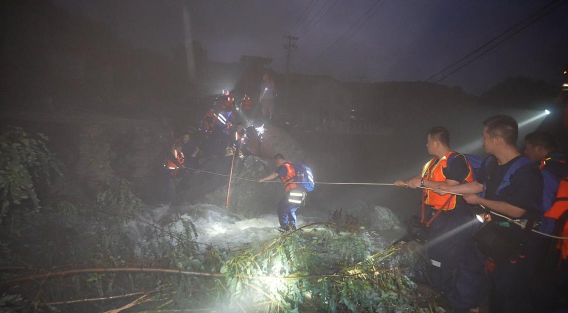 在东石古岩村,一名老人腿部骨折、高烧不断,消防指战员利用救援担架,徒步8公里交替护送,成功将老人转移至县医院进行救治。指战员说,救援虽然辛苦危险,但现场发生的一幕幕感人的场景让他们暂时忘记了疲惫,让他们热泪盈眶。