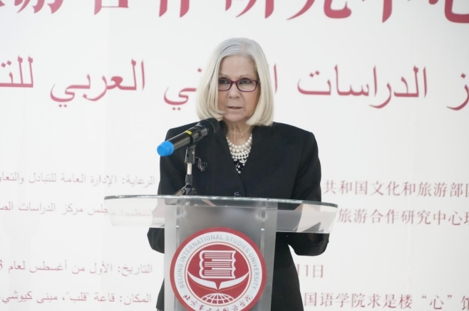2023年8月1日下午,中阿文化和旅游合作研究中心成立仪式于北京第二外国语学院(以下简称“北二外”)举行。阿拉伯国家联盟助理秘书长、社会事务部部长海法·阿布·加扎莱,文旅部国际交流与合作局局长高政,北二外党委书记常宇,北二外党委副书记、院长计金标参加成立仪式并为中心揭牌。中阿文化和旅游合作研究中心的成立有利于促进中阿人文交流和民心相通,为中阿命运共同体建设贡献智慧和力量。成立仪式由党委常委、副院长郑承军主持。