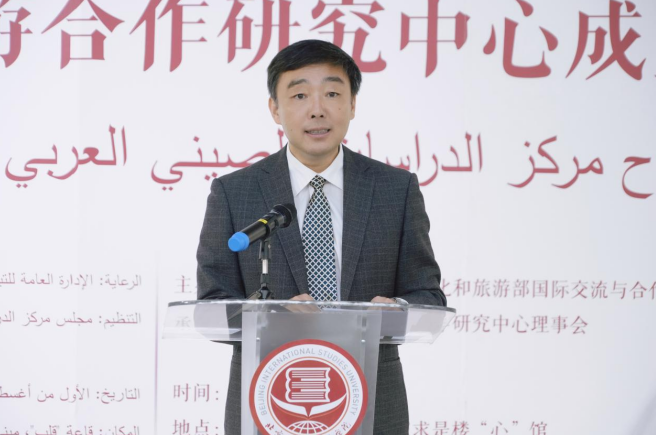 北二外党委书记、研究中心理事长常宇表示,文化和旅游合作是中阿文化交流的重要组成部分,更是促进民心相通的重要手段。他强调,中阿文化和旅游合作研究中心的成立是推进中阿文旅合作的重要抓手,也将成为中阿人文交流机制化的重要平台,为中阿人文交流合作注入更多新活力、新动能。围绕如何创新发展中阿文旅事业,常宇提出,中心将围绕习近平主席倡导的中阿务实合作“八大共同行动”,高质量开展中阿文旅“交流、培训、研究”三项业务;立足北二外及首都高等教育优势特色,打造中阿人文交流领军人才的培养基地;中心还将广泛整合政策资源,搭建中阿文旅产业合作新机制、新平台。