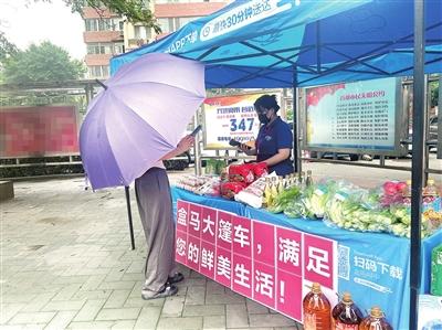 连续多日的降雨,给百姓生活带来了巨大影响,尤其是对老年人的买菜带来了很大不便。8月1日下午,在定慧西里小区,盒马鲜生超市的工作人员正在忙碌地向居民们介绍,此次带来的产品。“我们收集了市民需要的商品信息,这次带来了生菜、土豆、辣椒、大葱等蔬菜,基本上都是日常需要,还有米、面、油等,这样老年人不用下单就可以买到了,后面还会结合这些意见增加他们所需商品的订货量。”盒马鲜生超市工作人员说道。