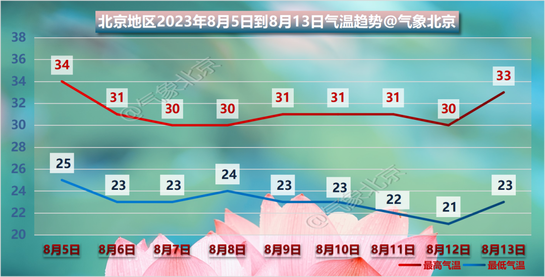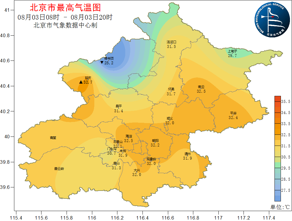 昨天,南郊观象台最高气温32℃(14:27),预计今天气温与昨天相仿,白天最高气温在33℃左右。降雨到来前湿度大,潮湿闷热的感觉尤为明显。