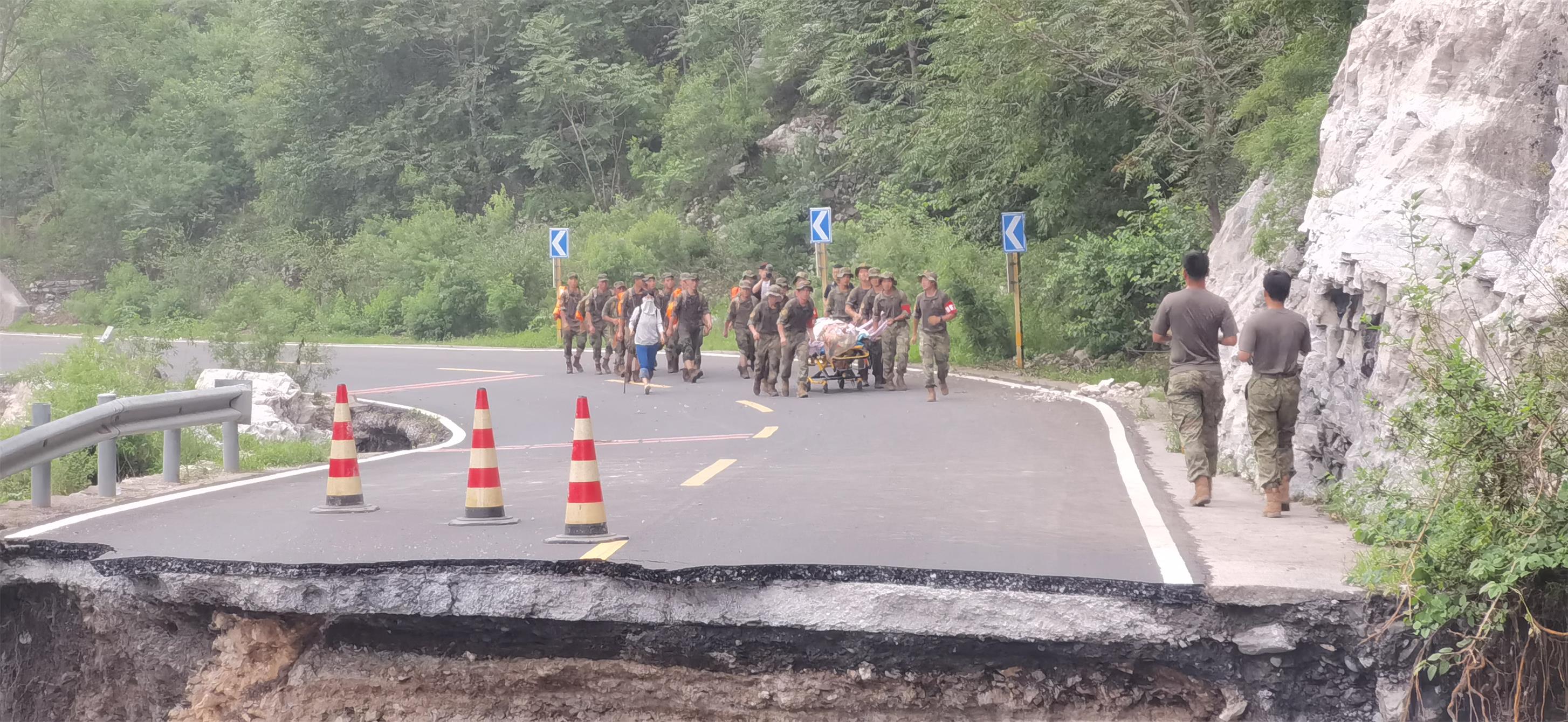 8月3日上午6点,22名侦察兵分成两组,向史家营乡元阳水村、柳林水村、杨林水村3个失联村庄挺进,沿途道路受山洪影响严重、多处中断,车辆无法通行。侦察兵们携带卫星电话、无人机、绳索等器材徒步前进,期间翻山越岭、涉水穿淤,有几乎垂直的崖壁,还有水流湍急的深沟。