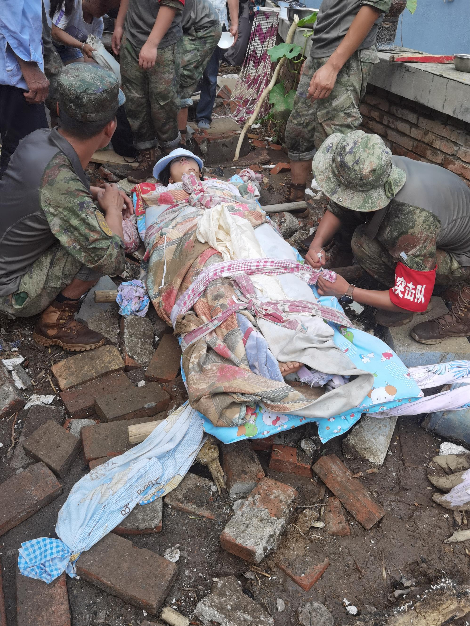 “作为人民子弟兵,哪里需要我们,我们就应该及时出现在哪里,不能辜负人民对我们的期望。”该旅侦察营副营长周鑫带领战友迅即赶到小女孩家中,一边利用就便器材制作简易担架,一边使用急救包对小女孩进行包扎固定,争分夺秒做好转运准备工作。