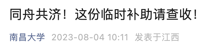 8月4日,“南昌大学”公众号发布消息:同舟共济!这份临时补助请查收!