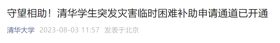 近日,受“杜苏芮”“卡努”等强台风影响,北京、天津、河北、河南、福建、浙江、广东等地出现大风暴雨天气,各地已启动防汛救灾工作。清华大学已设立临时困难补助,新生、老生均可申领。