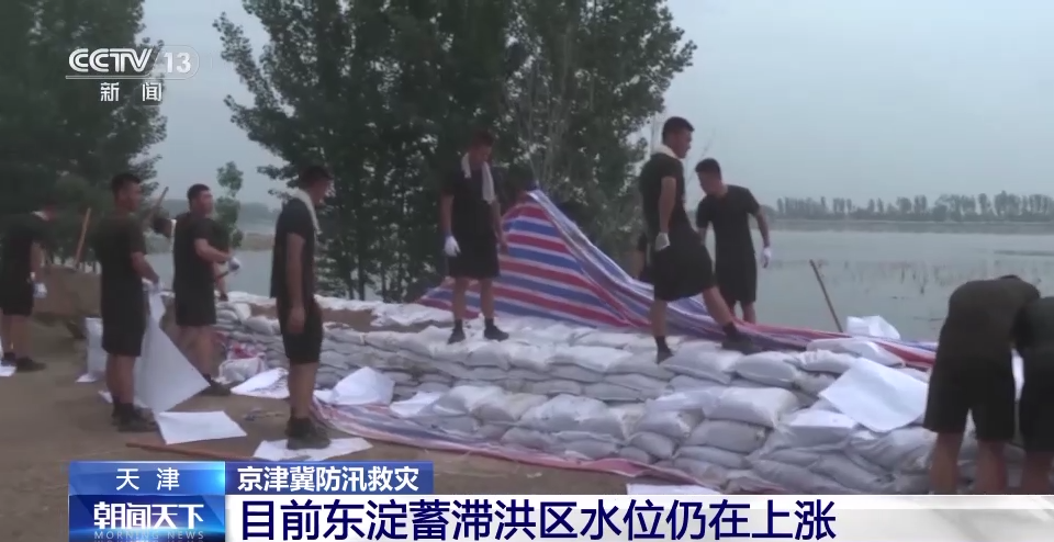 8月4日,大清河北支洪水进入天津,目前,大清河仍持续高水位运行,东淀蓄滞洪区水位还在上涨。天津市水务、交通等部门,对大清河南北两岸的堤坝进行加高加固。