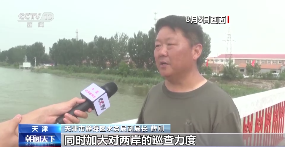 天津市静海区水务局副局长 薛刚:下一步,我们要加快收尾工作,同时加大对两岸的巡查力度,做好洪峰到来的应急准备,确保行洪安全。