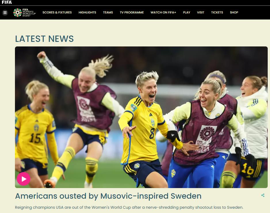 8月6日晚,2023年女足世界杯1/8决赛上演一场强强对话,上届冠军美国队与北欧劲旅瑞典队在120分钟的比赛里互交白卷,最终后者通过点球大战惊险取胜,晋级8强。失利的美国队创下队史世界杯最差战绩。