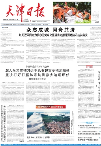 昨天上午,记者来到滨海新区太平镇子牙新河南小埝东段。此时的这里,烈日当空,数百名抢险人员正忙着加固堤坝。远远望去,堤坝上鲜红的党旗迎风飘扬。详情>>