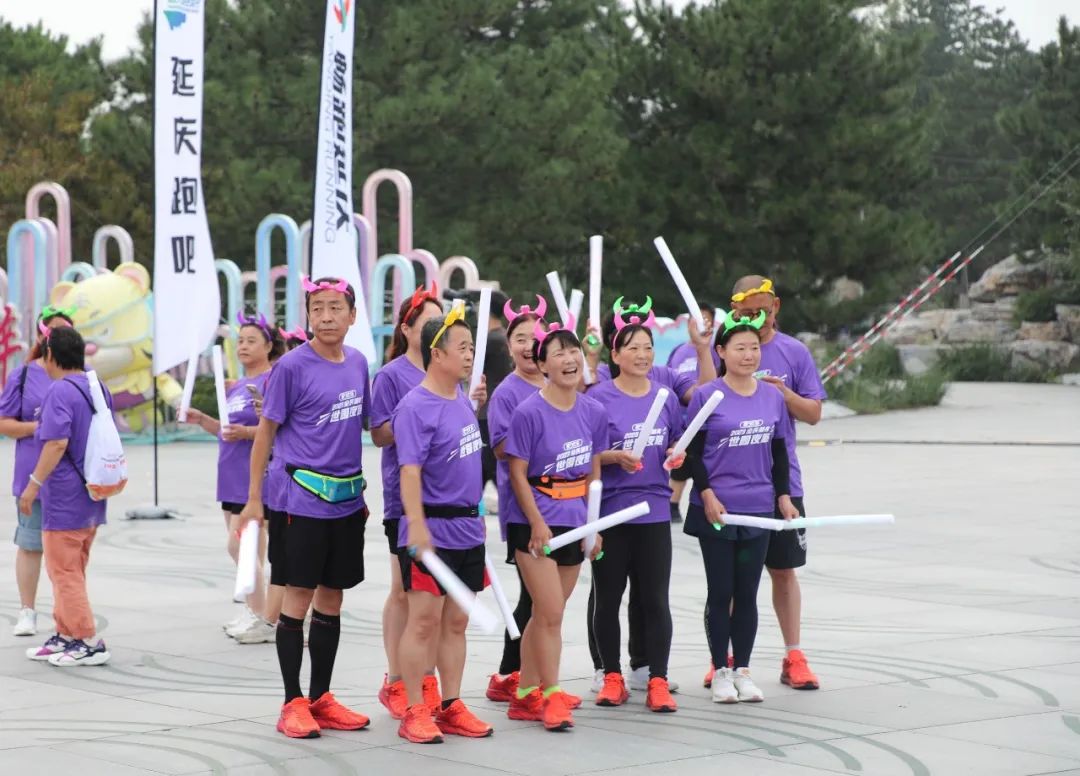 在五彩斑斓的灯光下,跑步爱好者们在世园1号门前汇成一片“荧光海洋”,随着发令枪响,大家从1号门出发,开启全程5公里的夜跑之旅。无排名之分、无速度之争,每个人尽情燃烧着“卡路里”,用奔跑描绘着世园公园的夜景,用荧光棒勾勒出夜空里的霓虹闪烁。