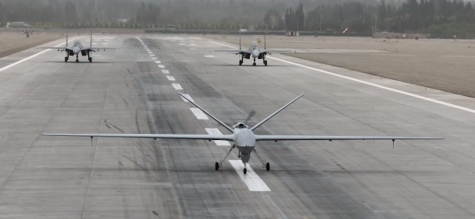 一段无人机与歼-16同框训练画面