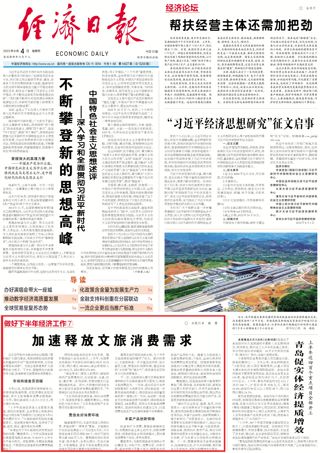 ↑点击版面图阅读全文《加速释放文旅消费需求》