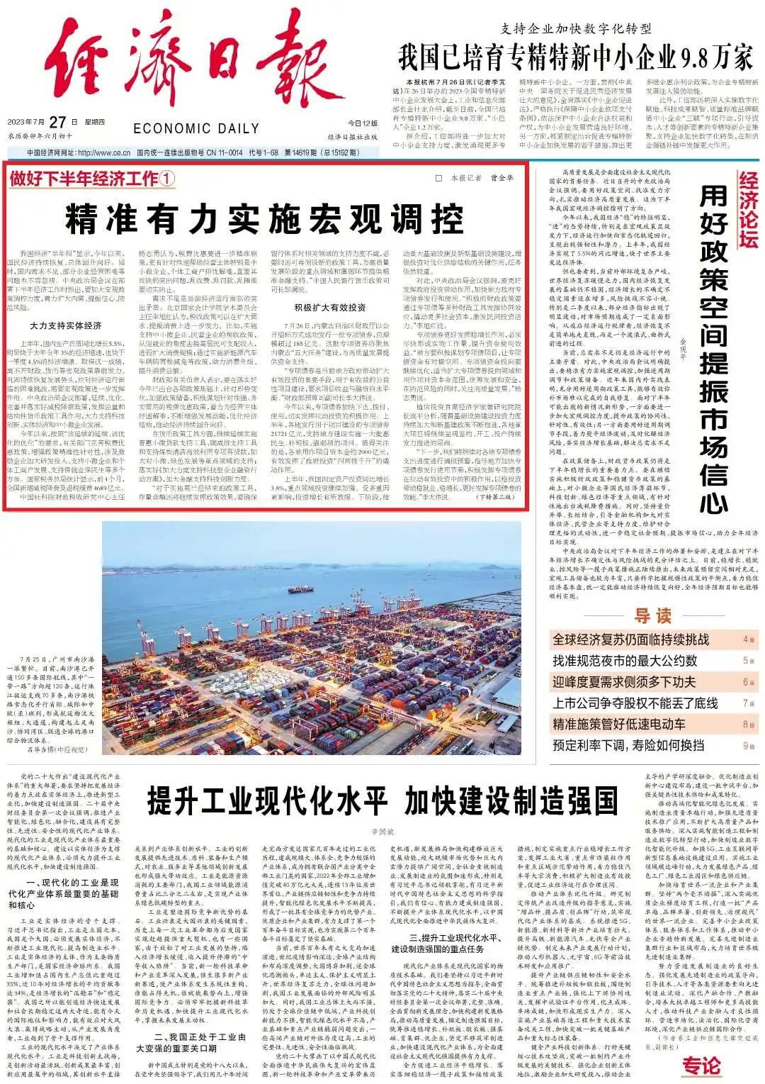 ↑点击版面图阅读全文《精准有力实施宏观调控》