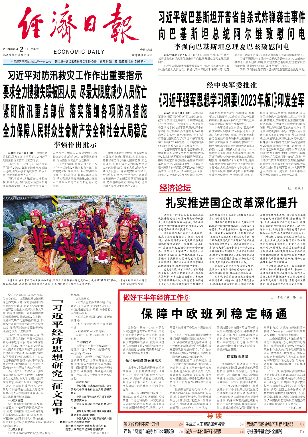 ↑点击版面图阅读全文《保障中欧班列稳定畅通》