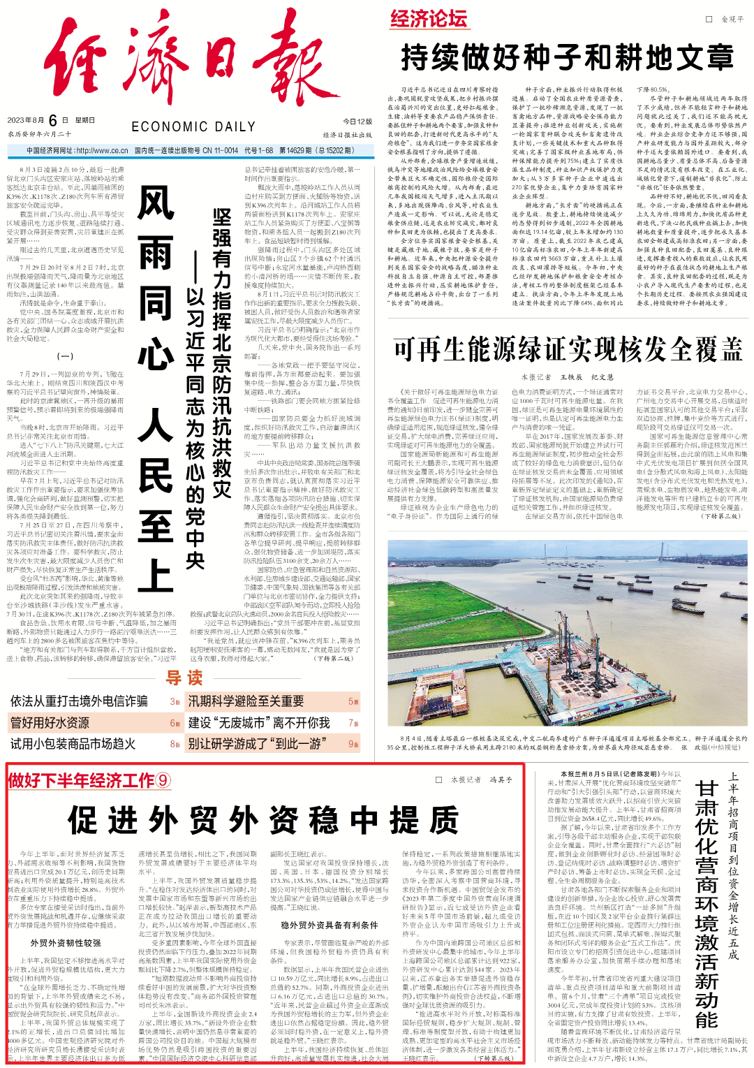 ↑点击版面图阅读全文《促进外贸外资稳中提质》