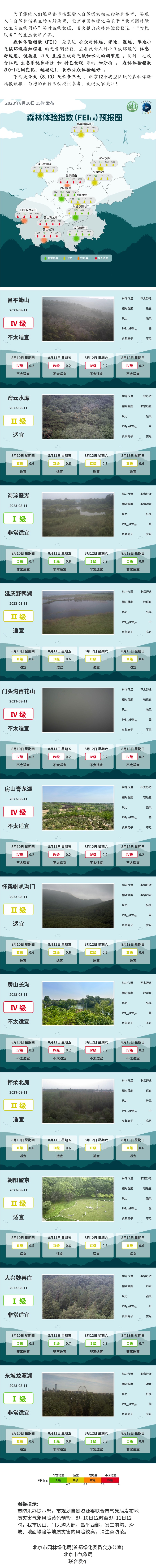 今天及未来三天北京12个典型区域的森林体验指数预报,为您的出行活动提供参考,欢迎关注!