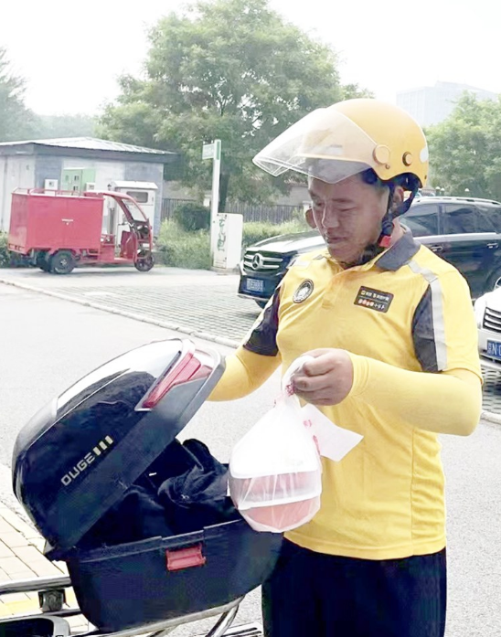 一年来,王生华跑遍马驹桥镇大大小小的社区,很多温暖的瞬间也感动着他。配送中他被汽车撞翻在地,小区里腿脚不便的阿姨主动帮他送外卖;冬天到派出所送餐,民警主动拿出热水给他倒满……“我是与马驹桥一起成长起来的,这里就是我的第二故乡。”提起马驹桥镇,王生华满满的都是感情。