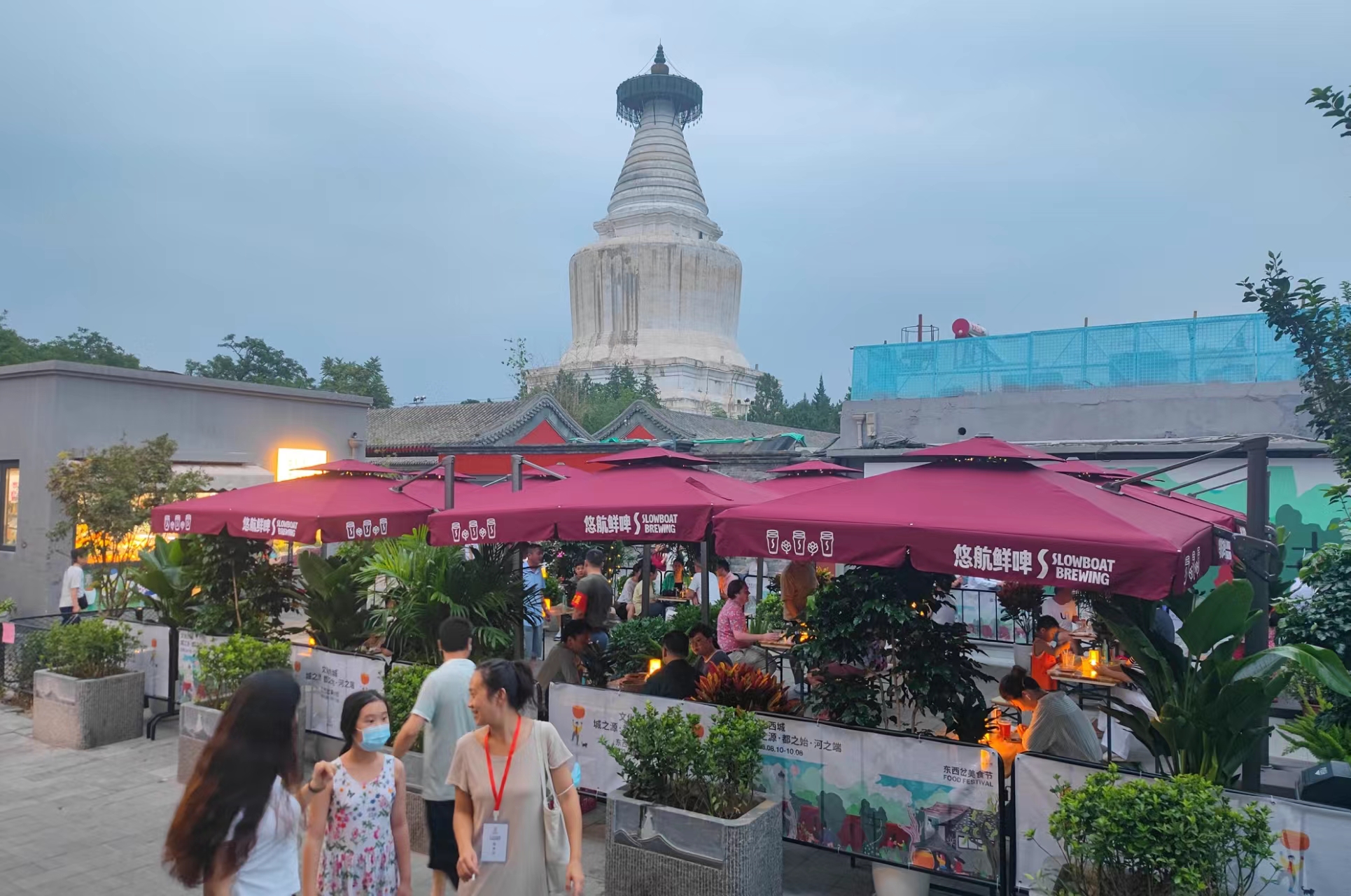 此次美食节是西城区今年5月份启动的“城之源 都之始 河之端•2023文化西城美食节”白塔寺分会场活动。美食节期间,在宫门口东西岔胡同东侧小广场,精酿啤酒独立品牌北平机器将供应咖啡、啤酒、鸡尾酒、简餐等,每天从16点营业至23点。白天主打咖啡;夜晚将有几十种不同的酒精饮料,搭配中式特色的下酒菜。商户以改装集装箱和改装餐车的形式亮相,配合露营风格的天幕、家具、绿植等。消费者可一边品尝精酿啤酒,搭配“新中式”下酒小食,一边在胡同中观景、休闲。