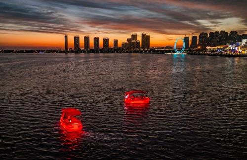 荣成市樱花湖体育公园突出“生态、自然、和谐”的理念,将人、水、园、林融会贯通,打造成兼具城市景观、生态体验、防洪泄洪功能和“全民参与型”休闲体育运动的主题公园。经过多年的建设和发展,如今的樱花湖体育公园已成为“城市的会客厅”,诠释着“深蓝、零碳、精致、幸福”现代化城市的生活方式。