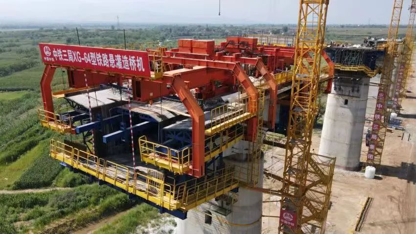 8月13日,由中国中铁三局集团有限公司和中铁第五勘察设计院集团有限公司联合研制的XG-64型铁路悬灌造桥机在雄忻高铁山西段同河特大桥施工现场顺利完成第一节段自动走行,成功实现空中造桥。这一新型造桥机的投入使用,为雄忻高铁山西段建设注入了新动能。
