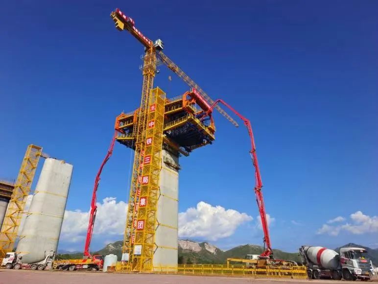 为高质量建设雄忻高铁,建设者们打造出这一新型悬灌造桥机。据介绍,这台造桥机可以像“蚕吐丝”一样在30米高的桥墩上进行造桥施工作业。