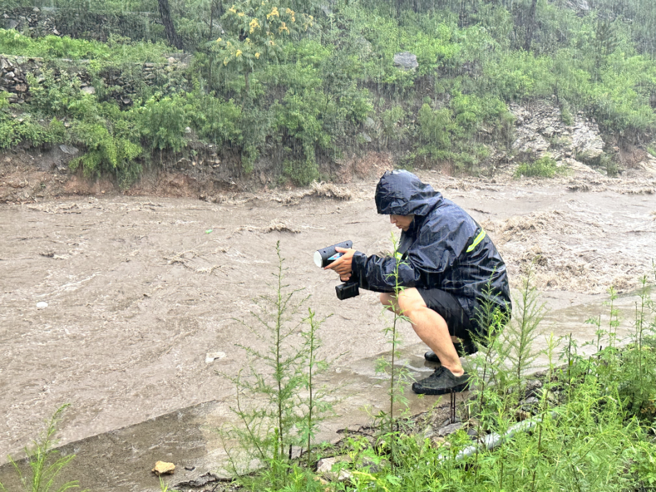 夜晚来临,雨势渐强,狂风卷着暴雨像无数条鞭子抽打在人身上、脸上,游世鹏一行7人根本顾不上湿透的衣衫和脚下的泥泞,一路前行,严格按照测报时间节点完成任务。
