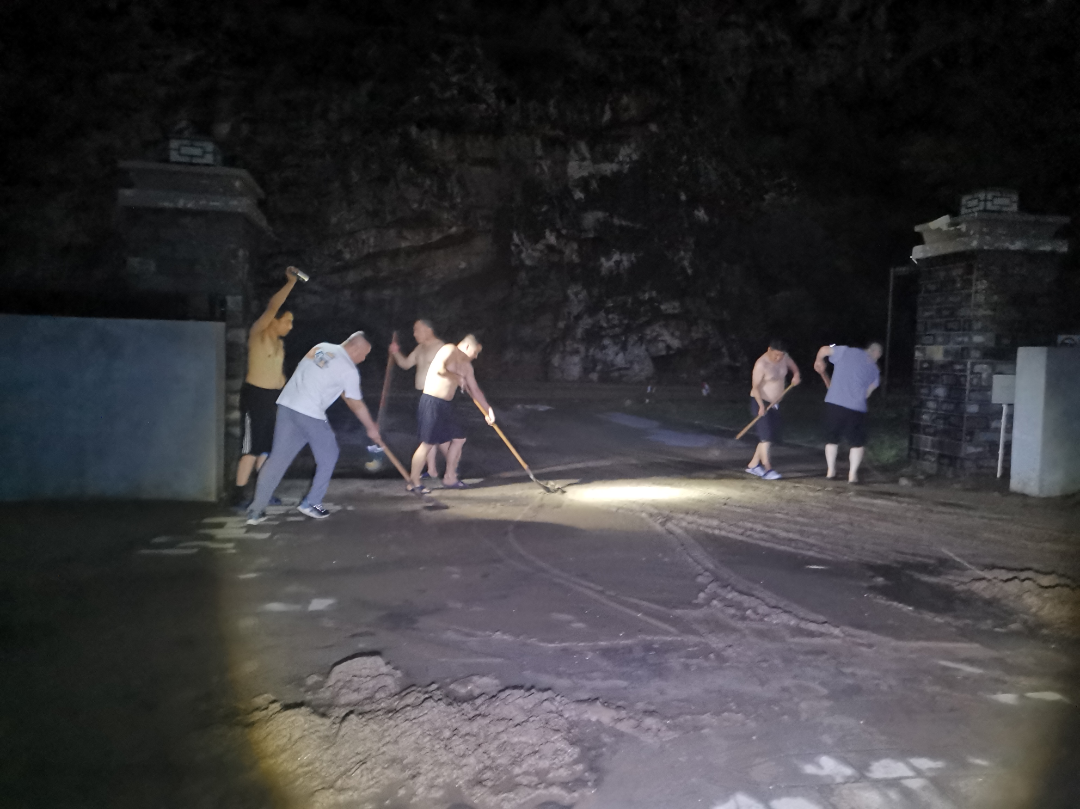 (8月1日20时,水务站开展生产自救清理淤泥)