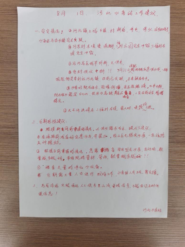 (8月1日,爬山寻找手机信号后报送的手写工作建议)