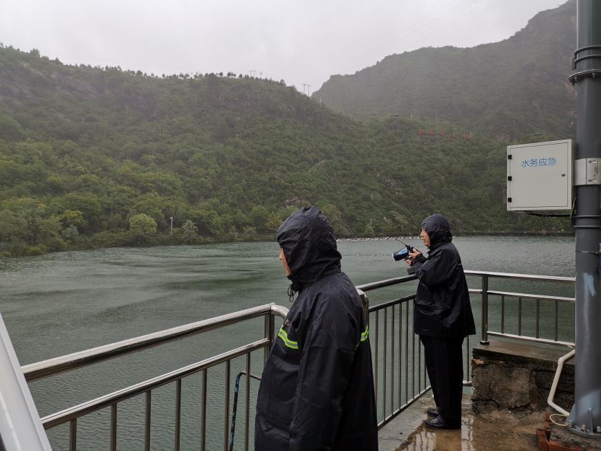 (7月30日7时,在霞云岭乡鸽子台水库进行水库水文观测)