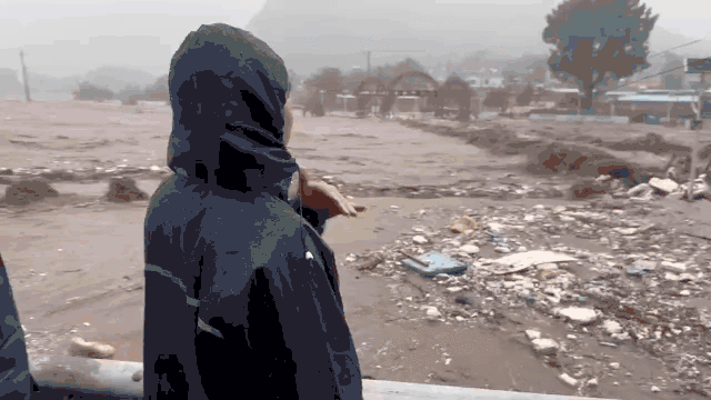 20分钟后,洪水跨过堤防,水务站院内开始过水,院外20米处主河道黑色的巨浪狂吼着冲击滩地,浪高达到5-6米!