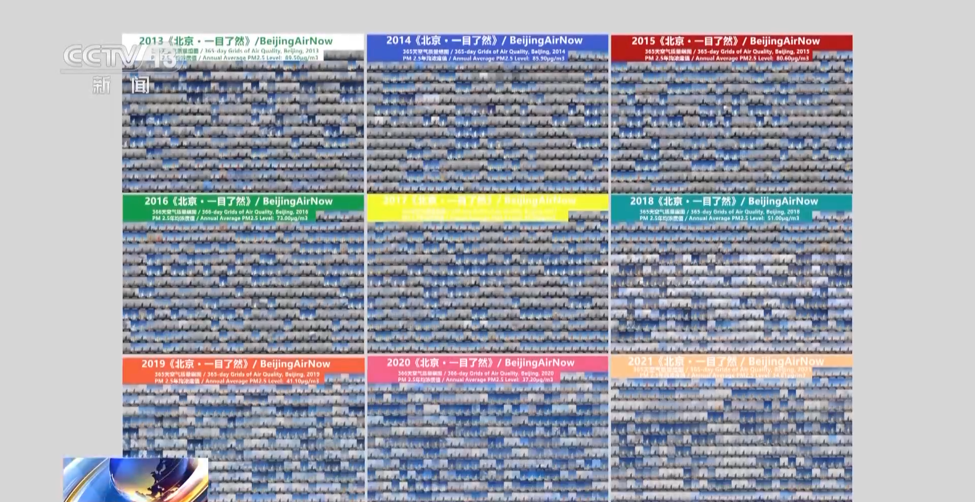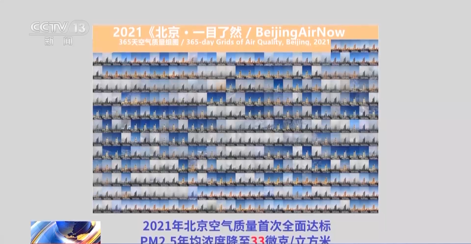 2021年,北京空气质量首次全面达标,PM2.5年均浓度降至33微克/立方米。从2013年1月27日到2023年8月,邹毅用他拍摄的3900多张照片组成了北京蓝天图片集。