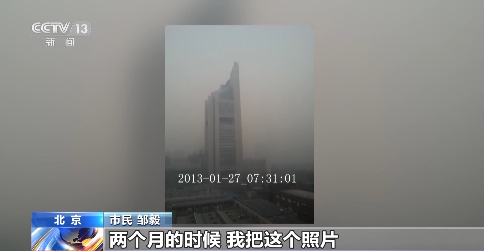市民邹毅:从2013年、2014年、2015年到2017年,在整个这个过程当中,能感受到国家、全社会为此付出的努力,基本上大家都在为这个目标奋斗,国家在污染治理,在环境保护,那个时候你会感受到大家渴望一个大的变化,每天都渴望它是一个蓝天,每天都渴望它是一个达标天气,所以这一年一年的坚持,这一年一年的期待才是我做这件事的动力。