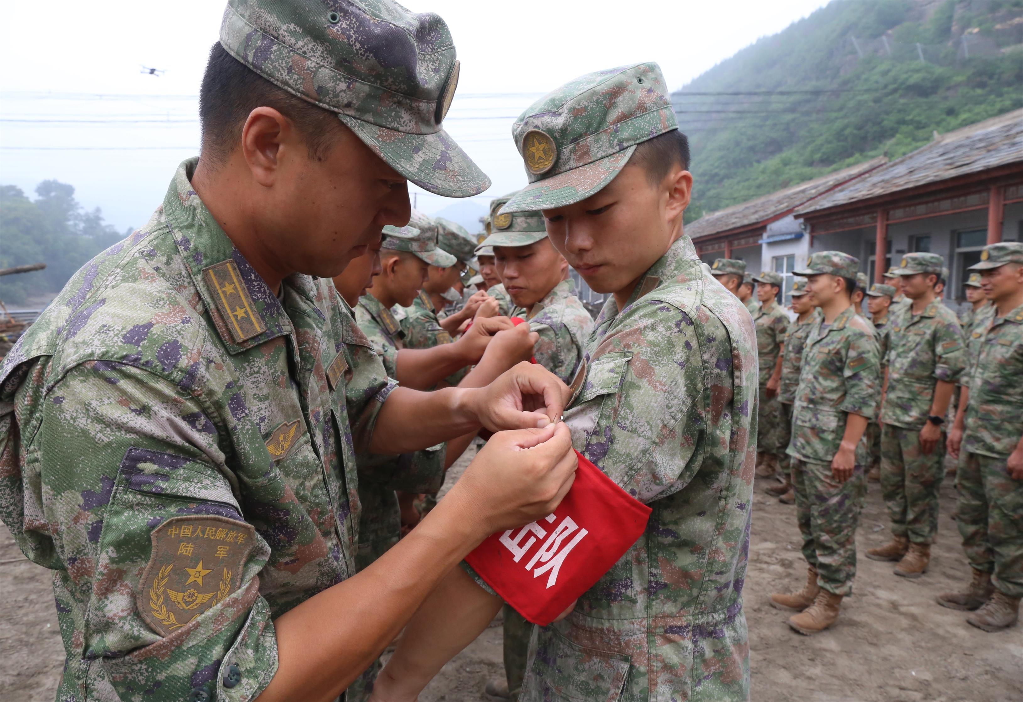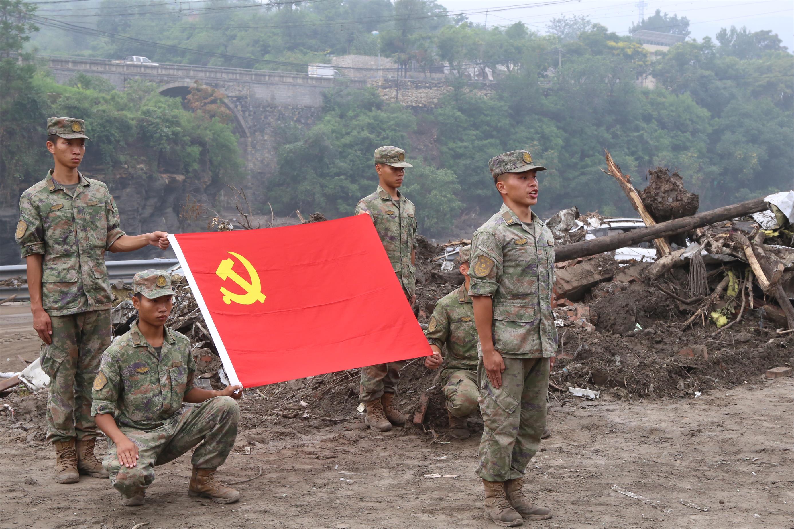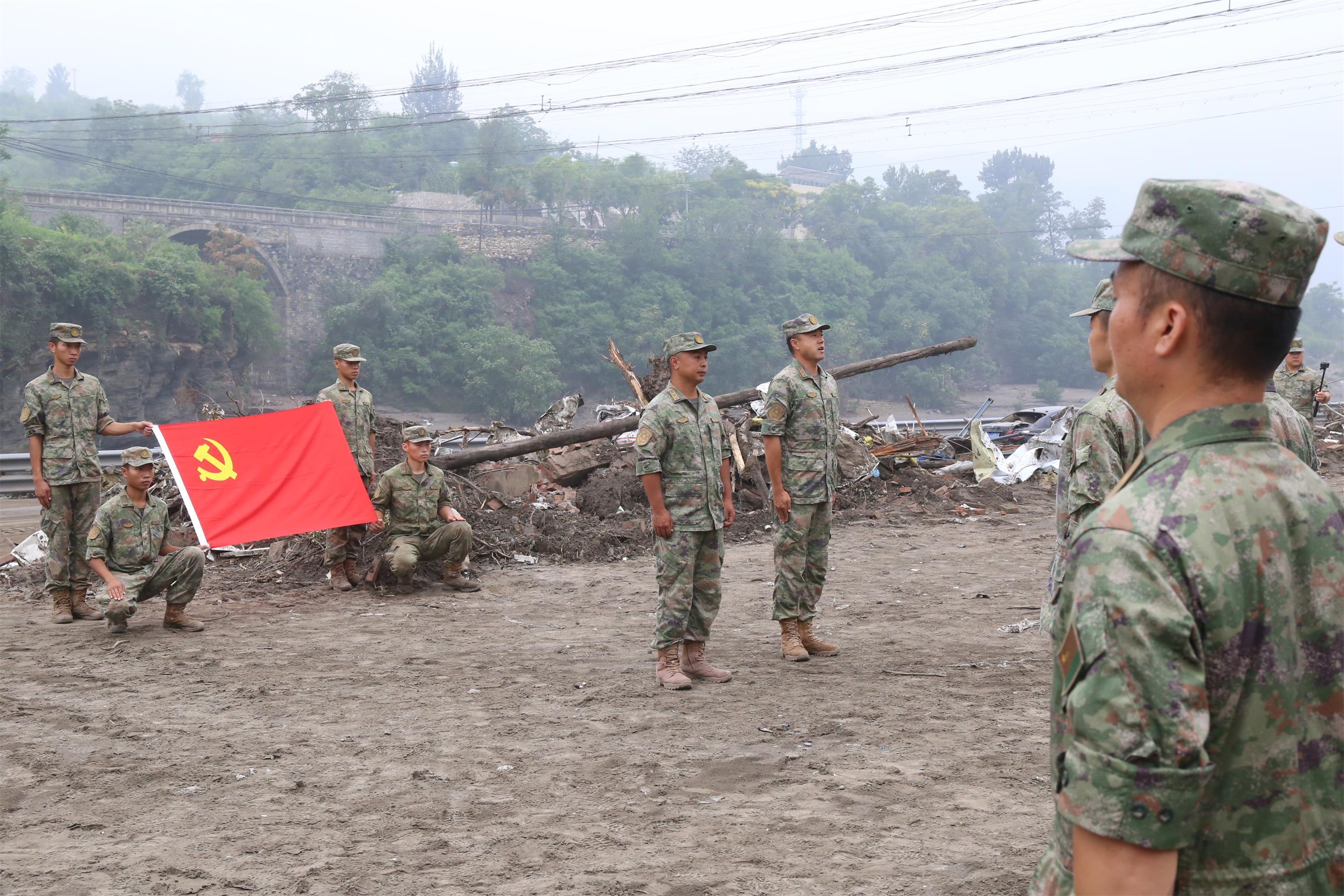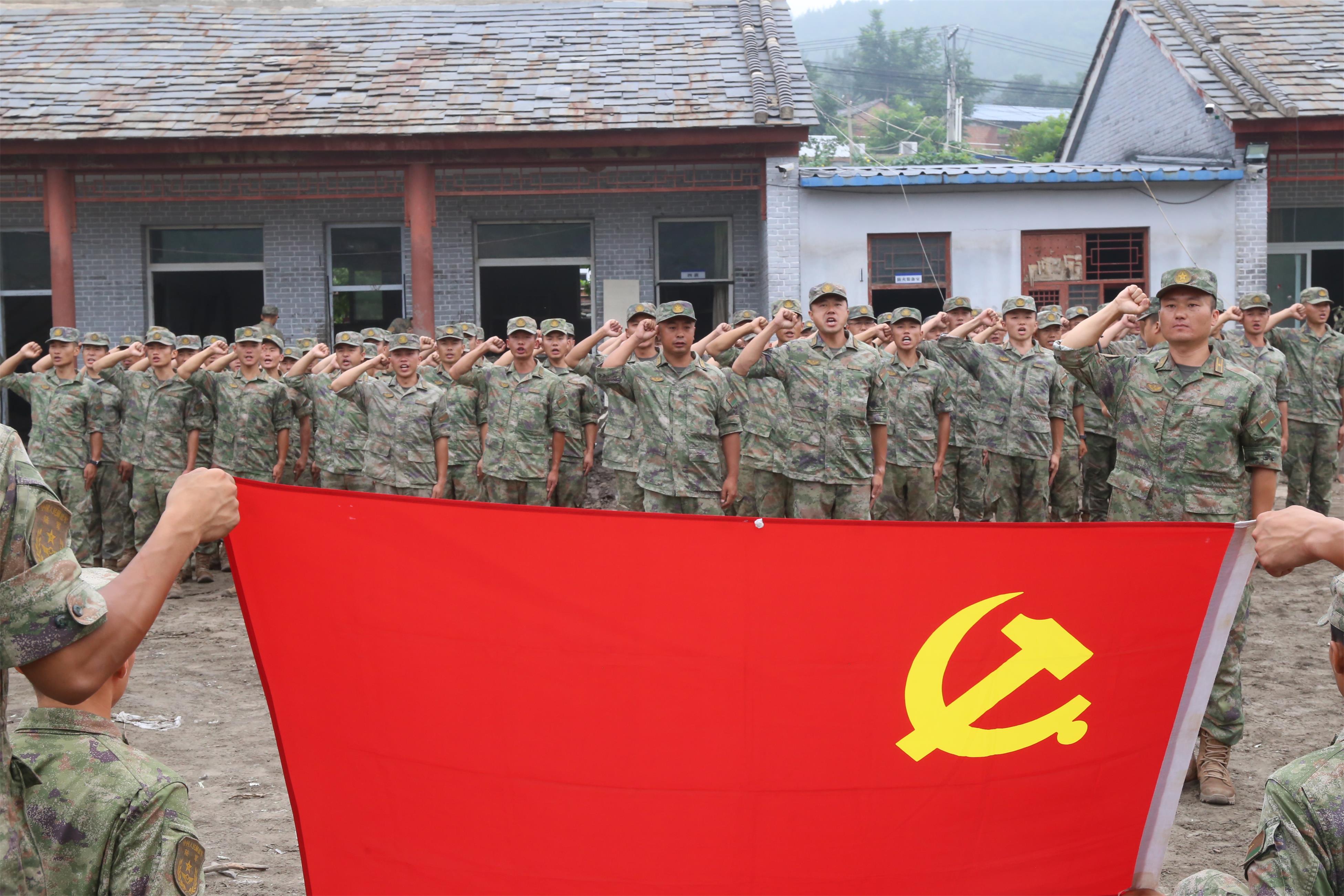 为充分发挥基层党组织战斗堡垒作用,进一步激发广大官兵使命感、责任感、荣誉感,该旅在任务间隙组织火线入党,吸收6名在搜救失联村庄、进村清淤等任务中表现突出、作风顽强的优秀个人为党员。