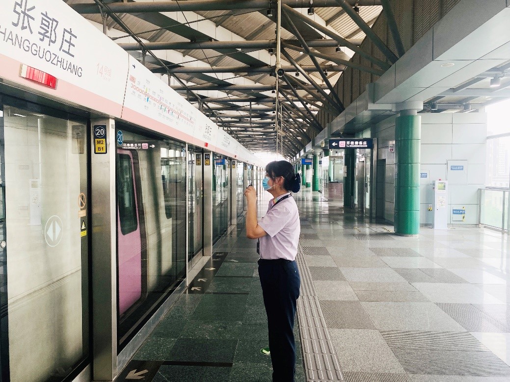 “张郭庄站41您好,我是七里庄站41,前往张郭庄站的221列车,站台门编号为18,有两位乘客需要协助,一位是视障乘客,一位乘客行动不便,请准备轮椅及渡板,做好接应。”6月4日上午11:00左右,张郭庄站的手台响起。