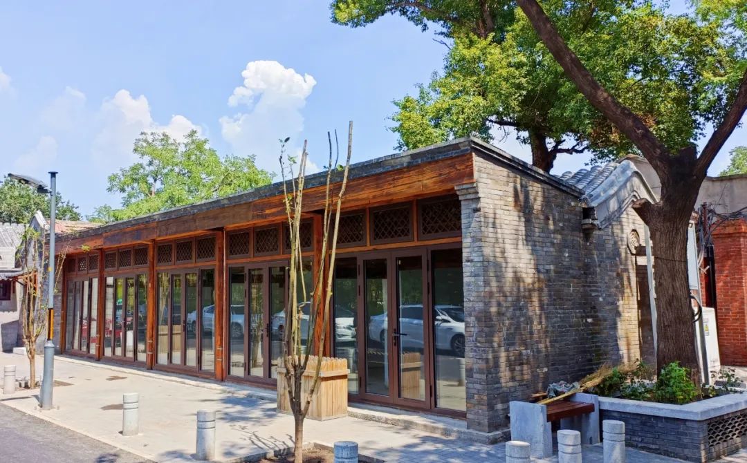西草市街上,传统风貌与现代城市发展成果在此共生,因此并不是沿街所有建筑都是清一色的青砖灰瓦,116号就是一个新旧交融的建筑。这里是一个沿街的五开间建筑,本是前店后厂的形式,改造中责任规划师对其进行挑顶翻新,装饰面采用小停泥砖,新做了挂檐板,并结合周围环境做了现代建筑常采用的落地大玻璃,将阳光“邀请”进去,体现建筑在不同历史阶段中的生长痕迹。