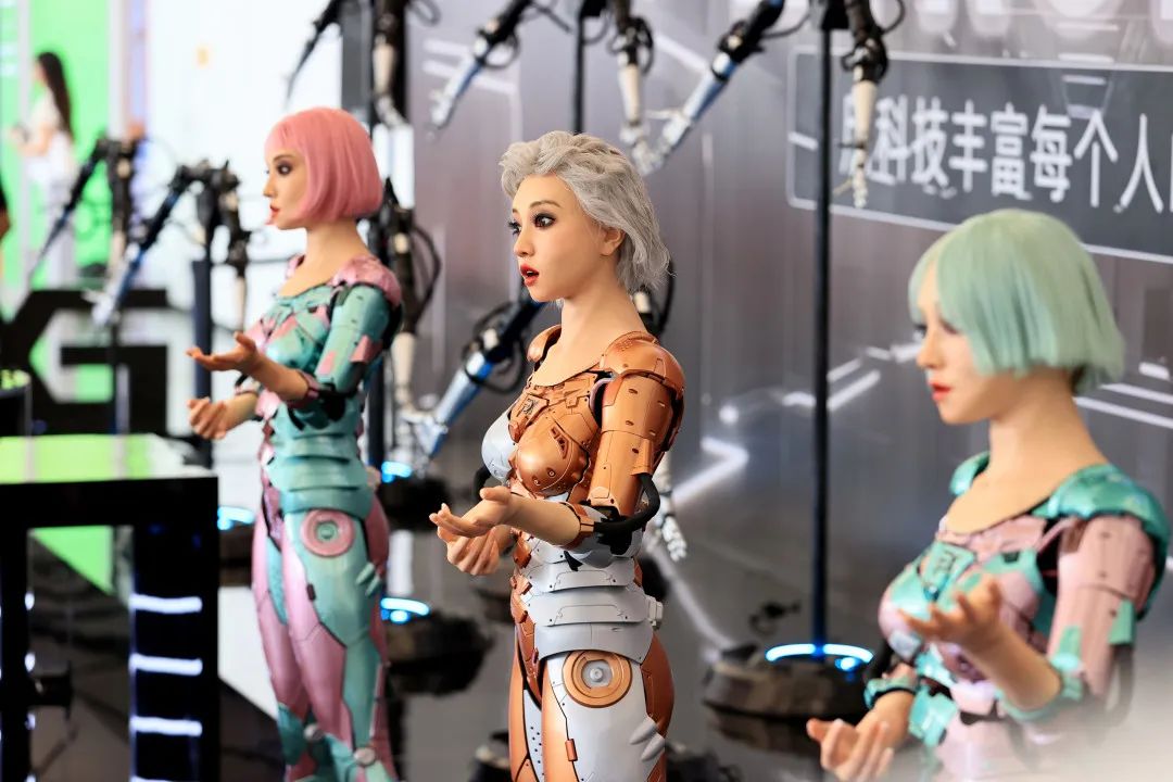 这是EX机器人集团打造的国际领先的仿生人形机器人产品,利用多模态融合技术和专属的中文语料GPT模型,这些仿生人形机器人具备可听、可看、可说、可答、可思考的能力,同时拥有超高的自由度,可以灵活抓取物品,模仿人类多种动作与表情。