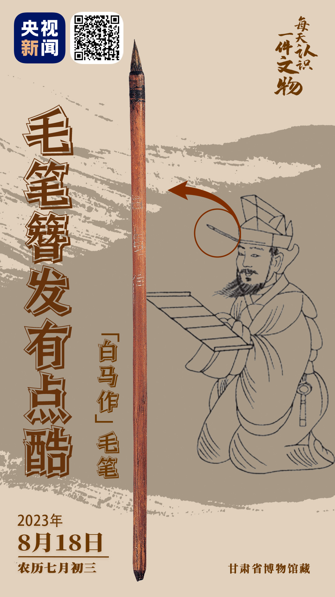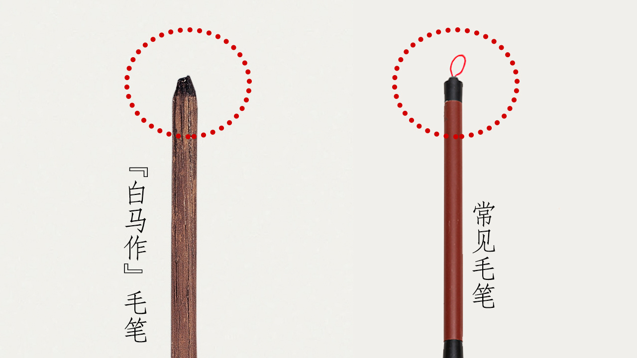 “白马作”毛笔笔杆的尾端有一个钝尖