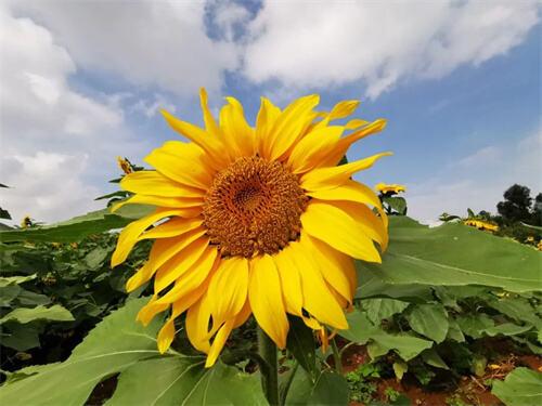入目无他人,四下皆是你。进入向日葵花海,感受最强烈的是“花开只向阳,绽放只为光,风雨从不怯,满眼笑金黄”的美景扑面而来,置身其中,自然而然就会获得一种积极向上,充满希望的蓬勃力量。永远向阳而生,不惧烈日烧灼,每一朵花都能自成风景。