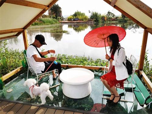 小渔村招商运营总监黄金山说:“我们小渔村的荷花现在已经进入盛花期。我们栽种的荷花将近有40亩,此外,还有近60亩的向日葵。现在,向日葵也正陆续开放,在8月底会进入盛花期,欢迎广大市民到小渔村感受四季花海的户外风景。”