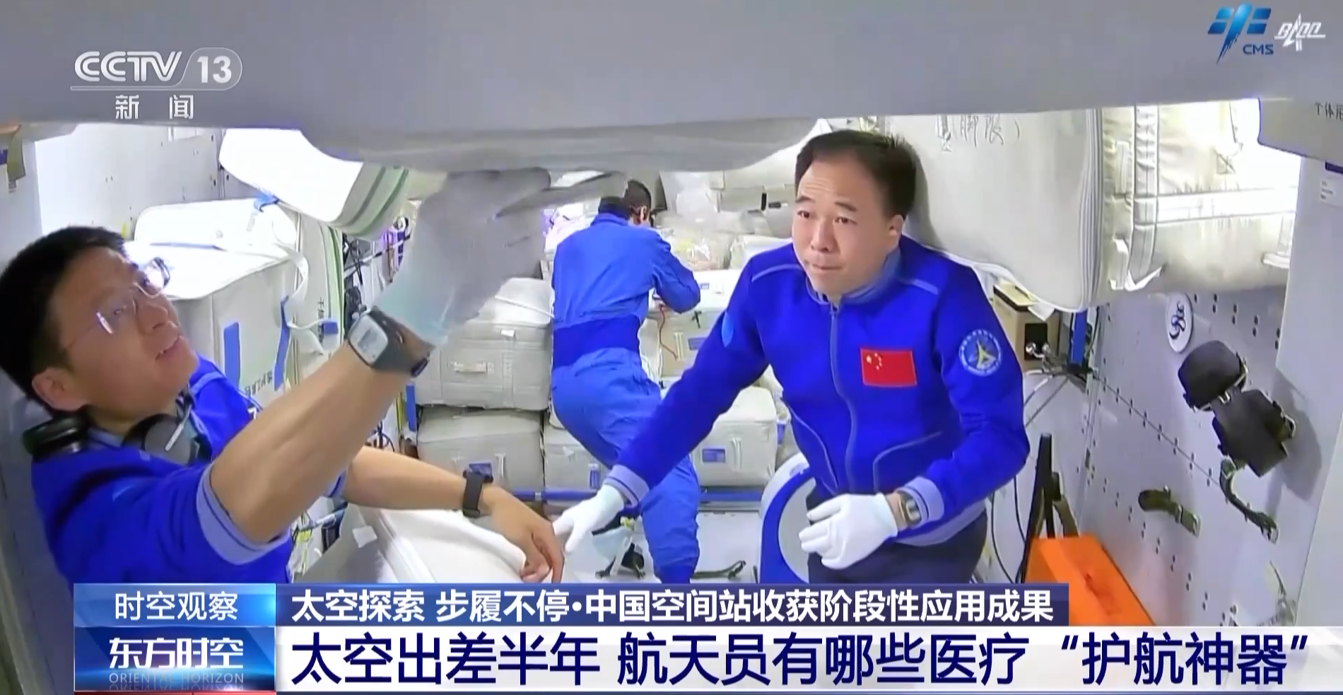 中国航天员科研训练中心研究员 中国载人航天工程航天员系统副总设计师 李莹辉:由于没有重力,会导致随着时间延长,肌肉萎缩、骨骼丢失、骨钙质流失的问题越来越严重。所以为了确保航天员健康,我们一直在不断发展有效的防护对抗措施。从这几次飞行状态来看,措施还是非常有效的,他们的体力,包括对重力再适应的能力都在不断增强。