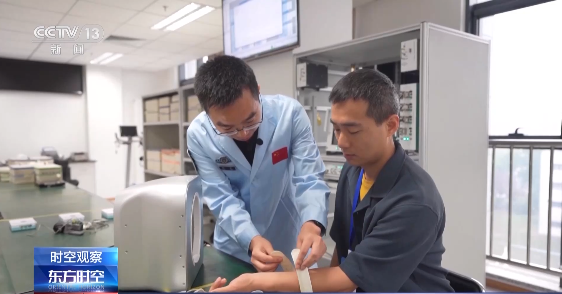 中国航天员科研训练中心副研究员 张洪玉:这个设备主要基于高频、低幅、短时的力负荷刺激,增强骨内细胞的活性。放在小腿胫骨,对它进行力学刺激,提高骨内营养分子流动,提高成骨细胞活性,来达到增加骨质骨量的目的。对机体胫骨位置击打,对整个下肢机体都是一种保护。