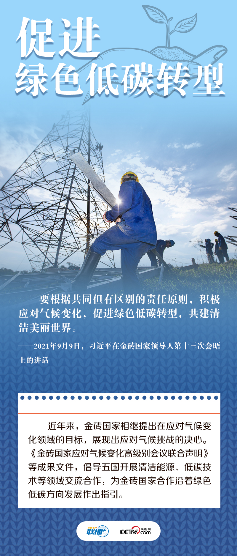 “我们五国虽然山海相隔,但怀着合作共赢的共同目标走到了一起”。“独木不成林。在经济全球化深入发展的时代条件下,金砖国家发展不能独善其身,必须在谋求本国发展的同时促进各国共同发展”。十多年来,习近平主席多次出席或主持金砖国家领导人会晤,论述金砖合作之道,提出“金砖+”合作理念,为推动金砖合作走深走实贡献中国智慧,在金砖国家合作进程中留下深刻的“中国印记”。