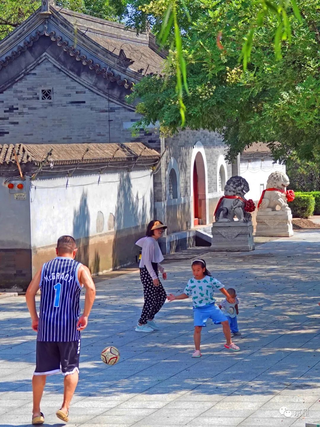 8月12日,在门头沟圈门地区,人们聚集在窑神庙前的古树下踢球娱乐,共同努力,开始新生活。覃世明摄