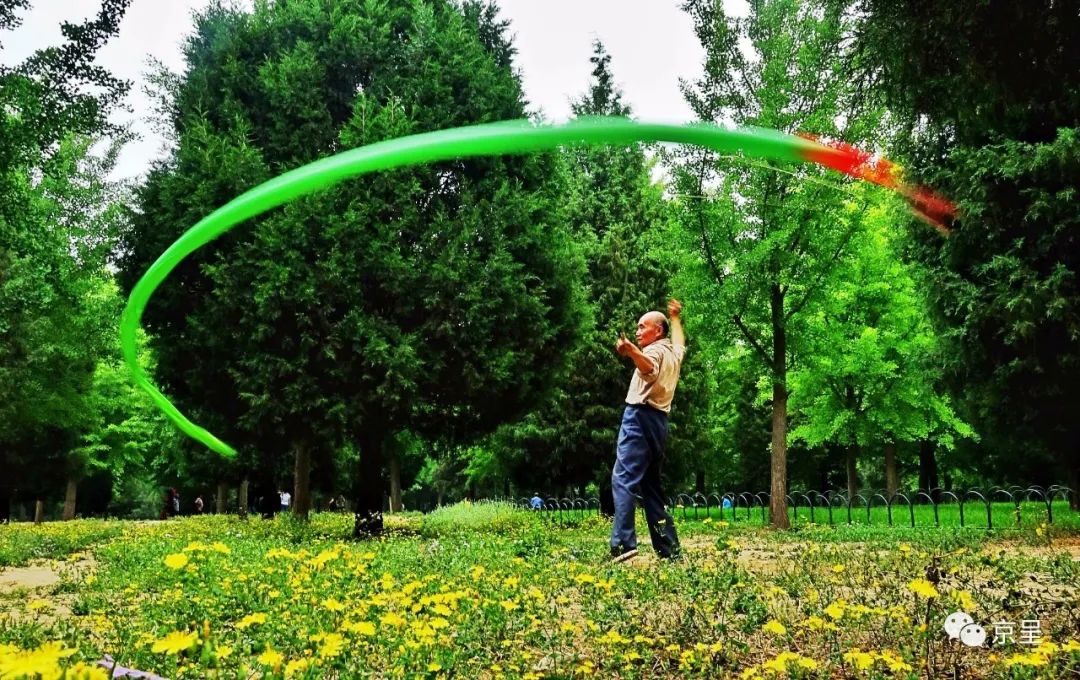 “武林高手”正在公园树林里练习太极剑,颇具侠客风采。赵承顺摄