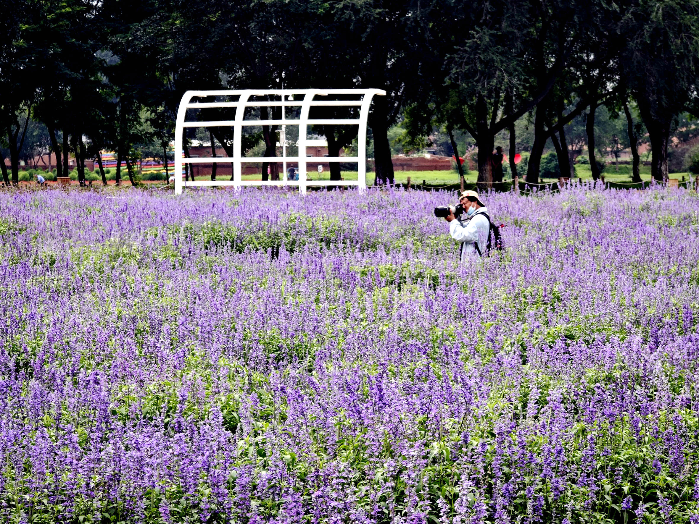 永定河畔紫谷伊甸园:百亩紫色花海随风起浪