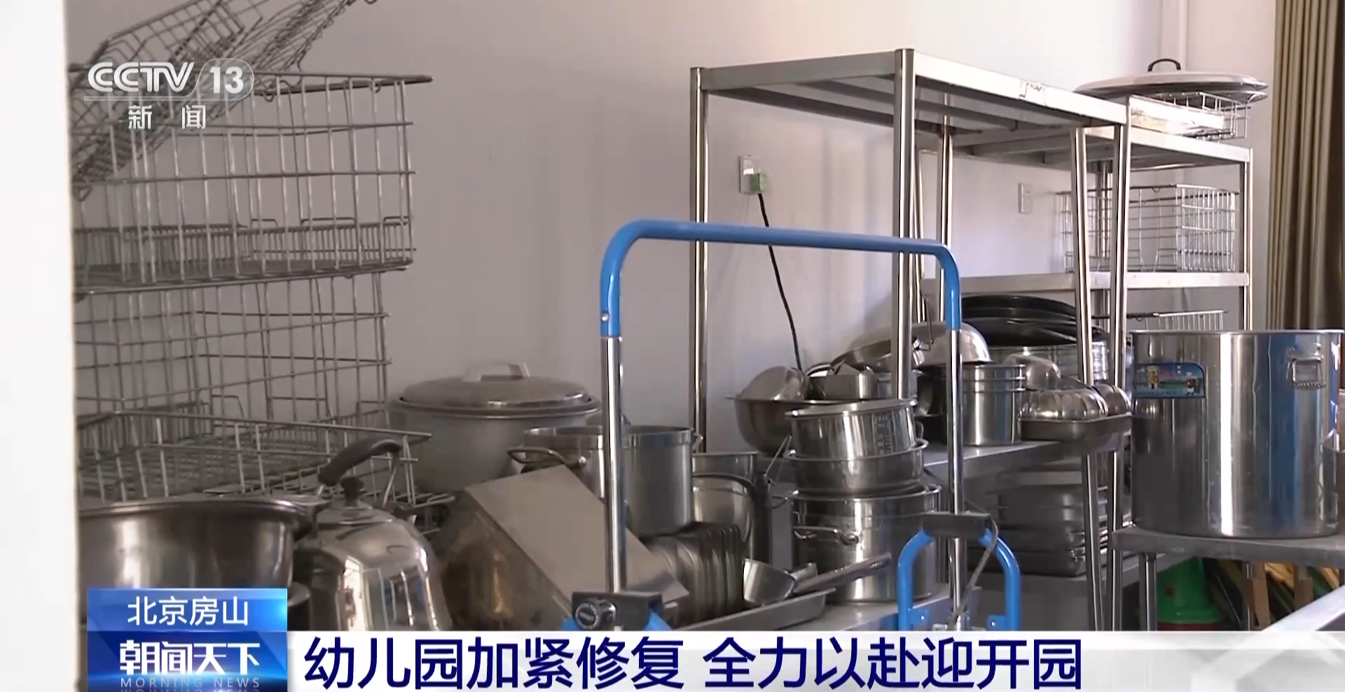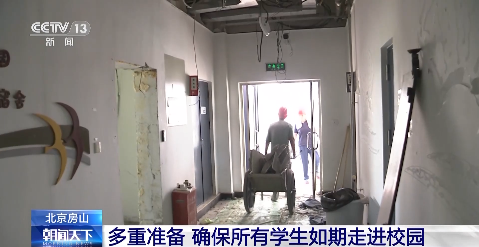 总台央视记者 高晨源:在河北镇中心幼儿园东庄子分园的食堂,工人师傅们正在加紧忙碌着,这里是当时幼儿园受灾非常严重的一个区域之一,经过一段时间的修缮以后,无论是从地面、墙体还是照明,已经大体完工了。现在工人师傅正在进行门窗的安装,在开学之前,食堂所需要的仪器设备和装备也将陆续进场。
