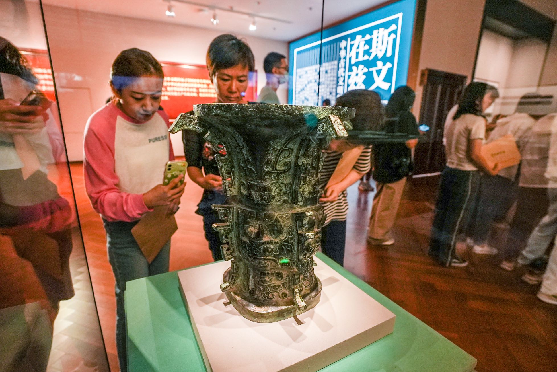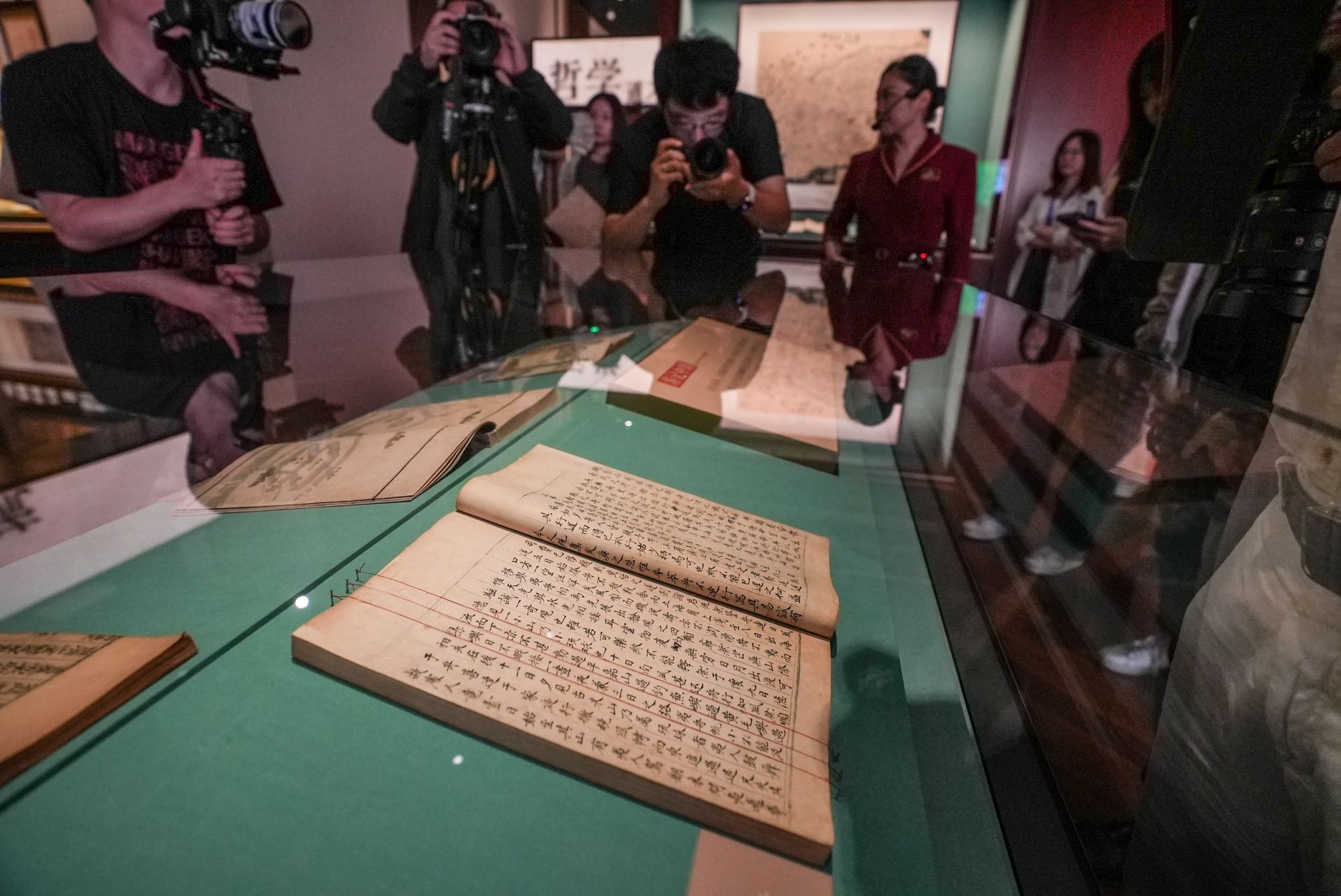 围绕国家书房,基本陈列“见证伟业——中华民族复兴版本展”和“斯文在兹——中华古代文明版本展”中,以陶器、甲骨、青铜、简牍、丝帛、纸张等为载体的中华文明印记贯穿展线,其中不乏最早记录“中国”一词的何尊,宋人书、宋人刻、宋人拓的孤本《西楼苏帖》,唯一一尊未经人工修复的兵马俑等重磅文物。泱泱中华文化,在亘古岁月中薪火相传。专题展览“版本琳琅——中国当代出版精品与特色版本展”里,不同版本的《新华字典》、新中国成立后人教版前4套全国通用中小学教材、深受海外读者欢迎的多语种《红楼梦》绘画本等,铭刻岁月印记、富有时代特色,展现了新中国文化建设的繁荣景象。