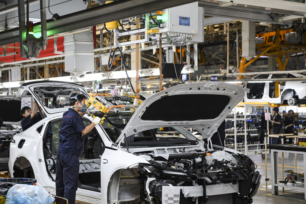 长安汽车重庆两江智能工厂工人在作业(2022年6月16日摄)。新华社记者 王全超 摄
