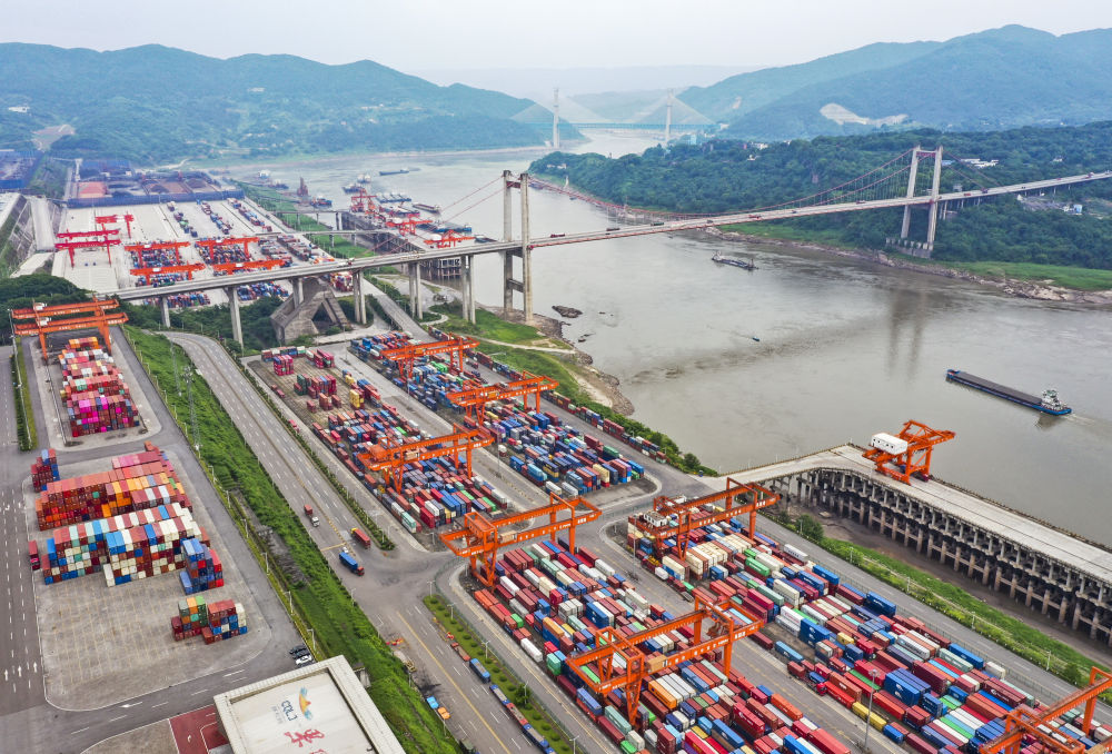 如今的果园港,已成长为长江上游地区联通世界的“中转站”——欧洲货物搭乘中欧班列抵达果园港,再沿长江转运;东南亚货物经西部陆海新通道运至果园港,再经长江分拨,或乘中欧班列前往欧洲……
